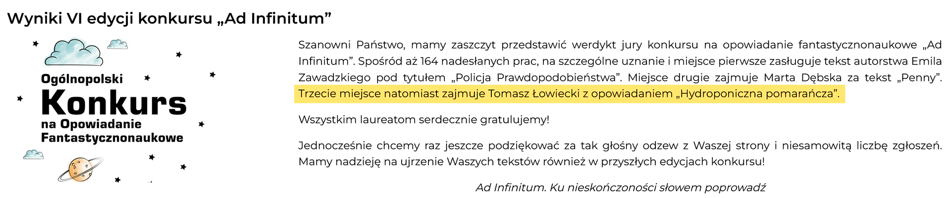 „Jury przyznało wyróżnienie, które zdobył Tomasz Łowiecki z Zamościa za tekst ‚Hit-B’